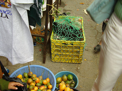 Live chickens bundled up in a plastic crate...you know...the usual.